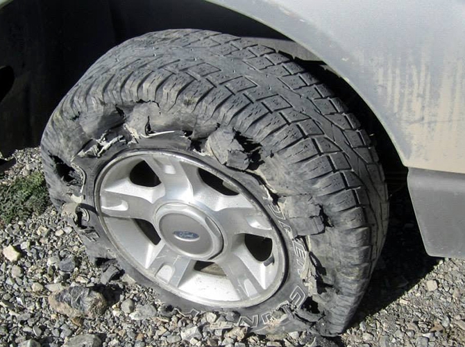 A reminder to always check your tyres. This unfortunate truck driver’s tyre explodes, sending them spinning all the way across three lanes.